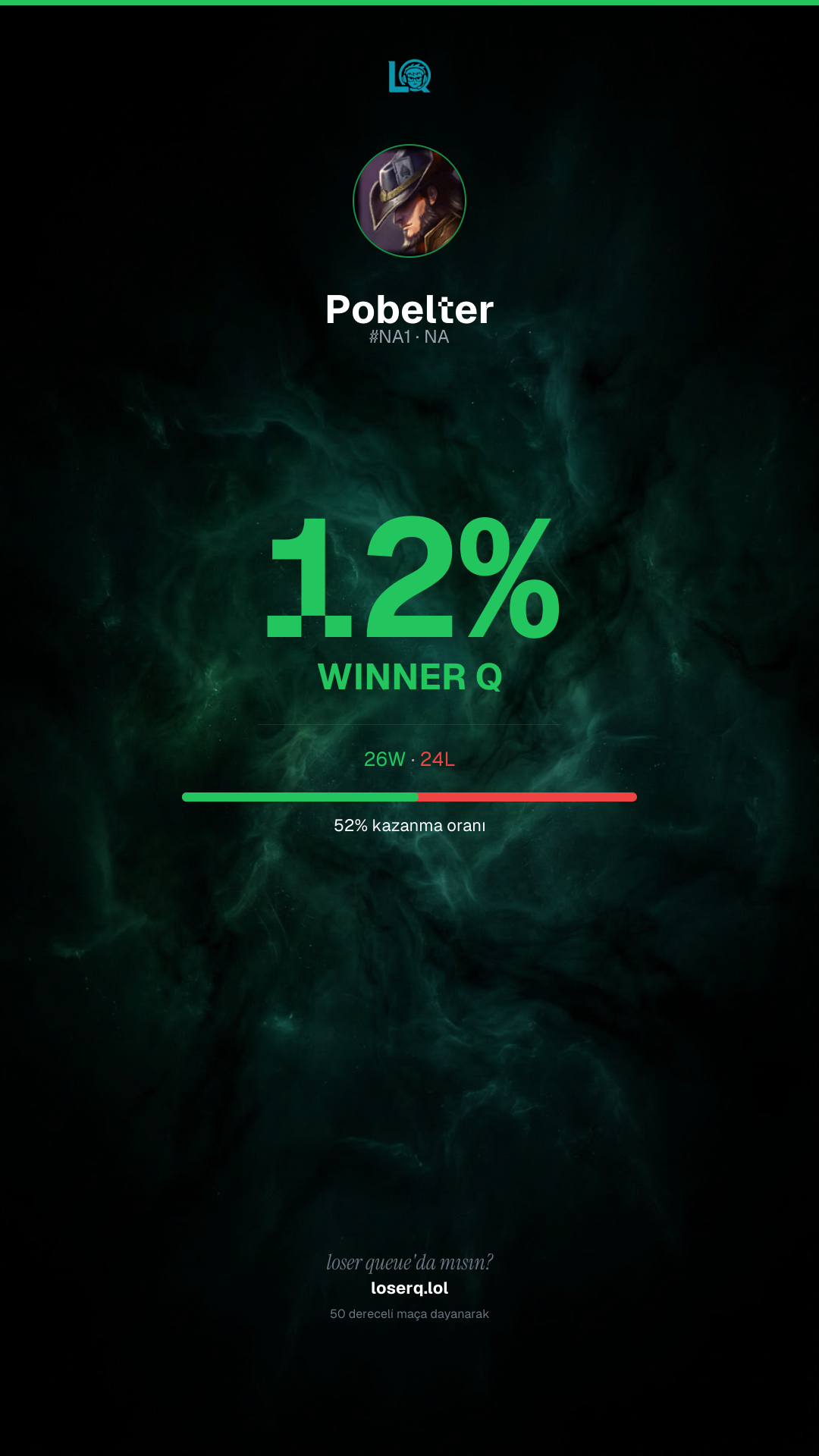 26 galibiyet, 24 mağlubiyet — 52% kazanma oranı.