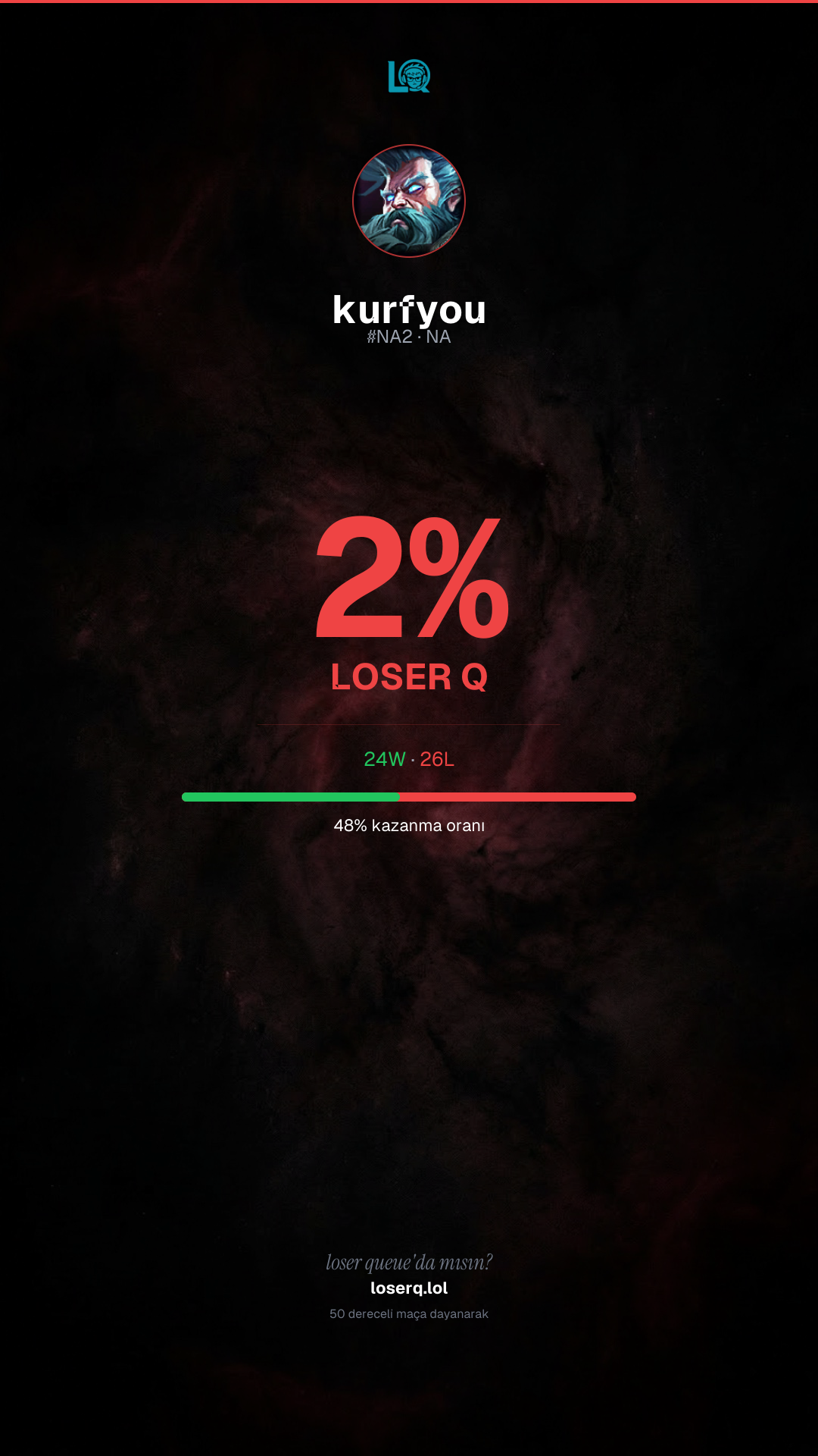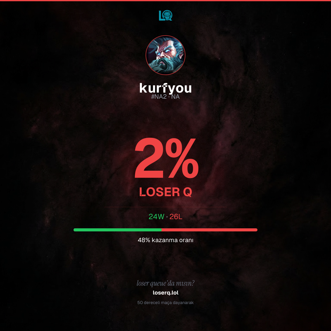 24 galibiyet, 26 mağlubiyet — 48% kazanma oranı.