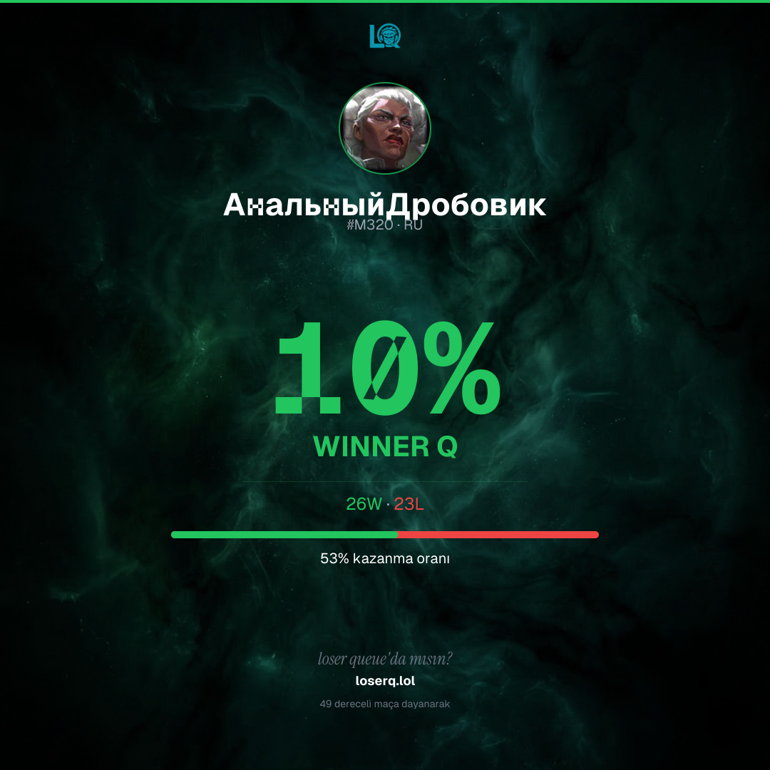 26 galibiyet, 23 mağlubiyet — 53% kazanma oranı.